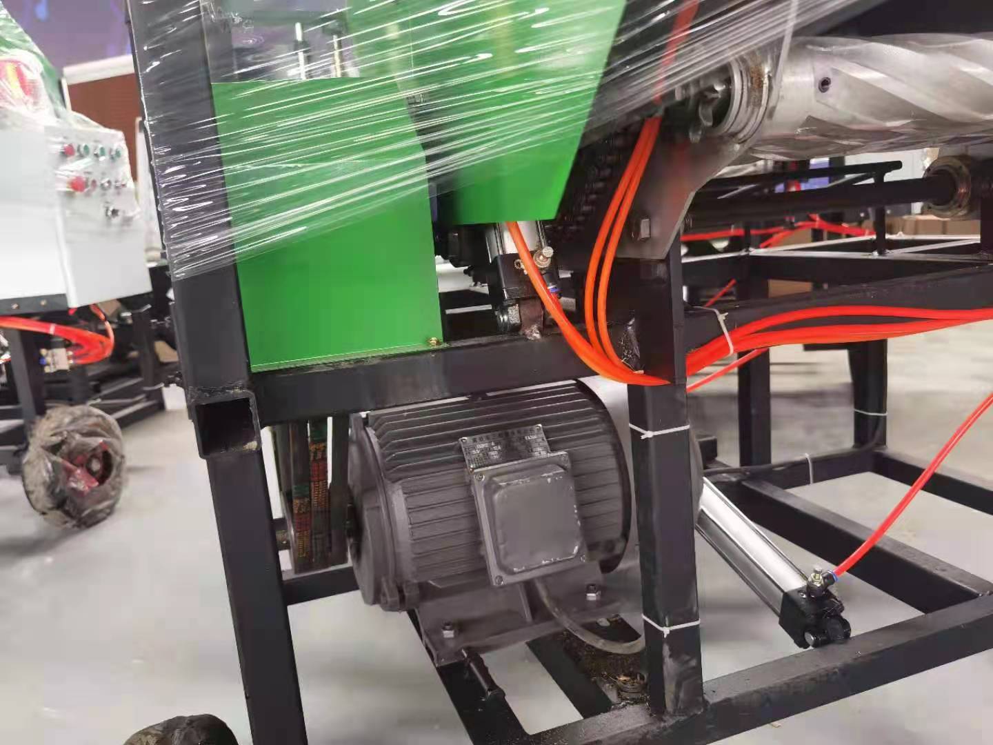 秸稈打捆機(jī)由打捆、包膜兩部分組成,在開始使用一體機(jī)作業(yè)時(shí),我們應(yīng)先把麻繩放在打捆機(jī)上,將麻繩穿好放到夾線管內(nèi),然后把送膜卷按說明書要求方向,套入輸膜架支撐軸,放好首先通過機(jī)器前部人工給固定倉喂料,當(dāng)草捆大到固定倉和活動(dòng)倉接觸到一定密實(shí)度時(shí),活動(dòng)倉上方的惰性輥和左側(cè)的信號(hào)輪會(huì)均勻轉(zhuǎn)動(dòng),操作者板動(dòng)繞線離合手柄,機(jī)器開始往復(fù)饒繩捆扎,繞繩一周,麻繩自動(dòng)切斷,立即開倉放捆,草捆通過輸送帶直接落入包膜機(jī)的旋轉(zhuǎn)架上,用手把膜拉出,啟動(dòng)旋轉(zhuǎn)按鈕,旋轉(zhuǎn)架帶動(dòng)草捆轉(zhuǎn)動(dòng),操作者應(yīng)同步迅速將膜壓向草捆中部,并隨著草捆旋轉(zhuǎn)一周,然后立即松手,青貯PE膜逐漸逐層包裹在草捆外,草捆自隨著旋轉(zhuǎn)架公轉(zhuǎn),當(dāng)包膜到設(shè)定的層數(shù)時(shí)(如三層),離合器自動(dòng)脫開,旋轉(zhuǎn)架停下,操作員在草捆和輸膜架之間把牧草膜切斷,把牧草膜斷頭一端壓入草捆端面重疊處,然后將包膜好的草捆從包膜機(jī)上面取下,擺放整齊,最高碼放不要超過四個(gè)包,因?yàn)樘咛厝菀装炎钕聦拥哪鹤冃?,造成空氣進(jìn)入,從而造成草料變質(zhì)霉壞。