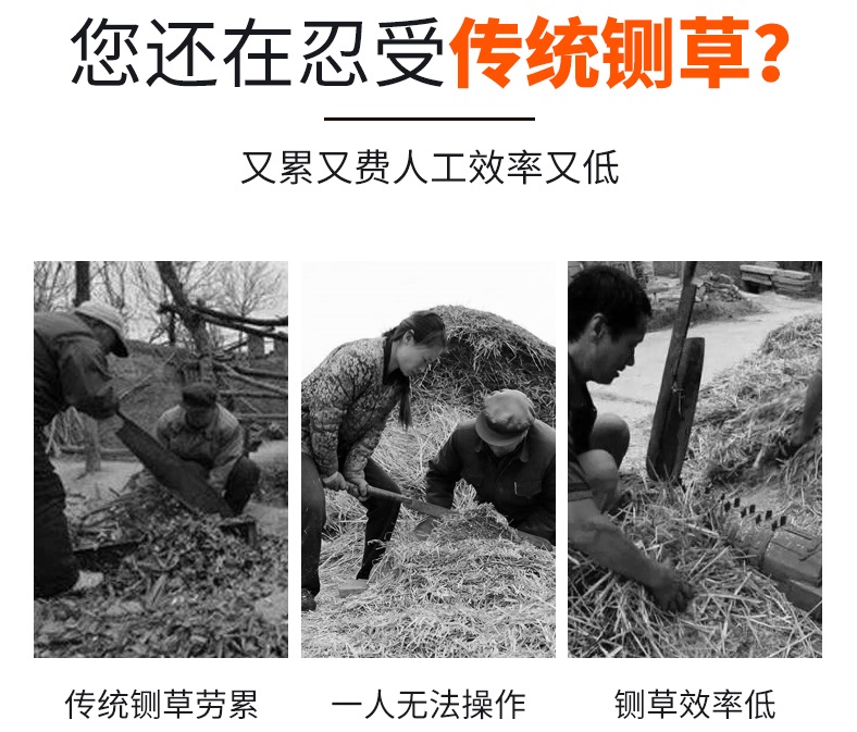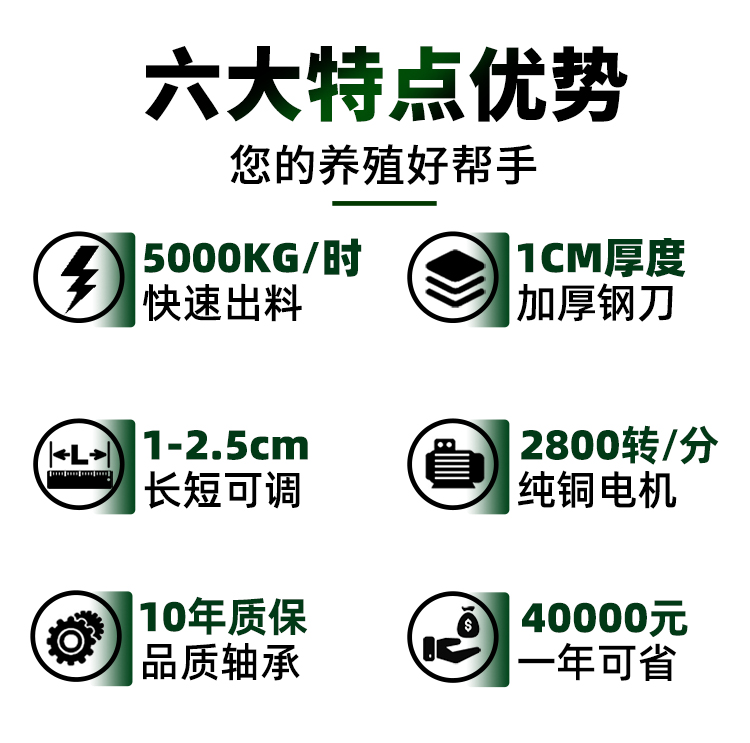 鍘草揉絲一體機(jī)型號:2.5噸、3噸、3.8噸、4.5噸、6噸。不同型號鍘草機(jī)功率不一樣,兩秒出料。